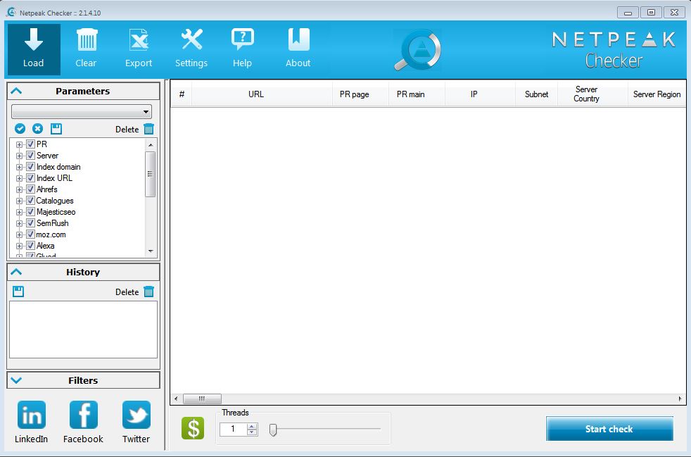 NetPeak is a tool designed for mass analysis. It allows you to compare different websites across all kinds of parameters for free (see parameters below). But, it also integrates with Ahrefs, Majestic SEO, SemRush and Moz (SEOmoz). So, if you are paid subscribers to any of these SEO suites, then you’re really going to dig it for its versatility.